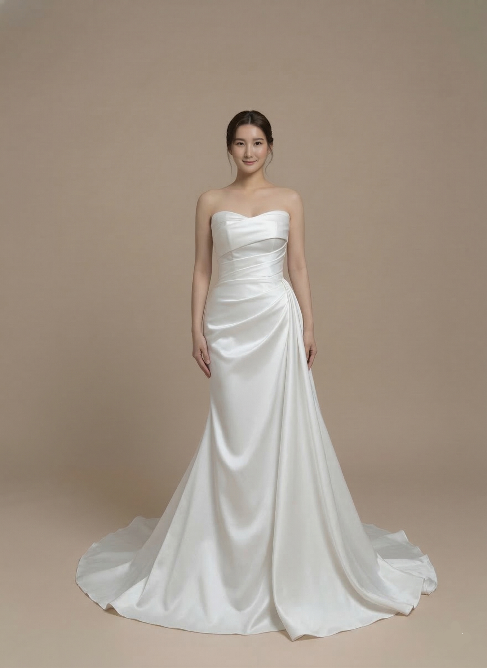 ✨ Style: Modern Minimalism; featuring clean lines, high-sheen satin, and contemporary draping.